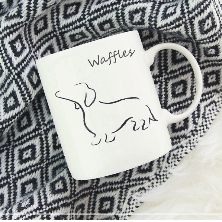This glossy ceramic mug features a clean, minimalist dachshund design that's sure to bring a smile with every sip. Simple, stylish, and oh-so-cute.